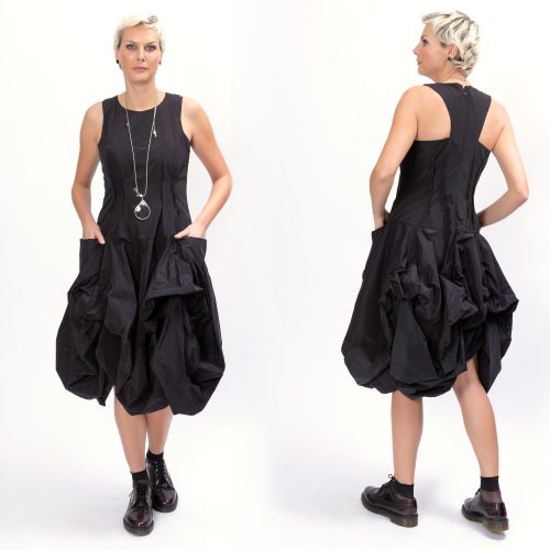 Avant Garde Black Taffeta Dress: Japanese Steampunk Clothing