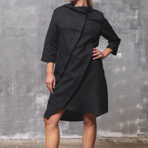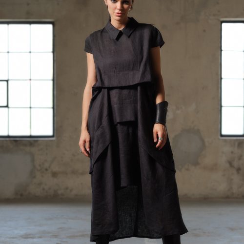 Asymmetrical Black Linen Dress: Steampunk Avant Garde Clothing