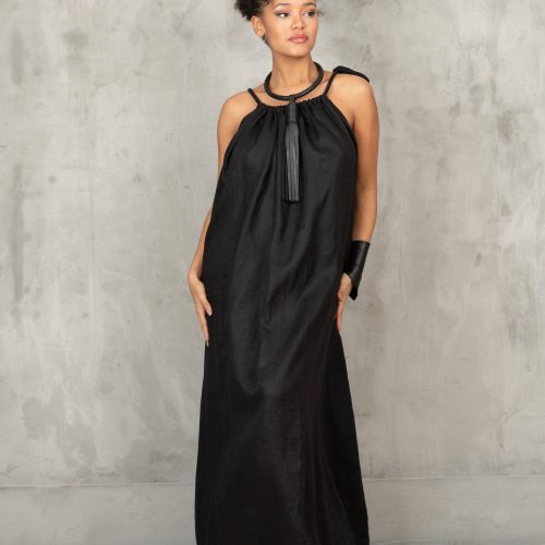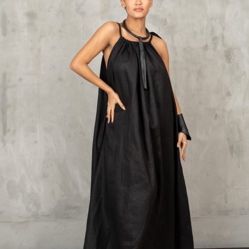 Black Linen Maxi Dress: Oversized Kaftan Summer Dress