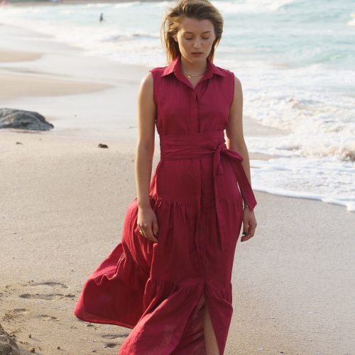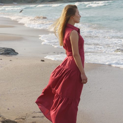 Burgundy Linen Maxi Dress: Long Cottagecore Summer Clothing