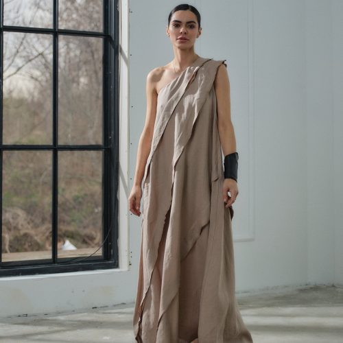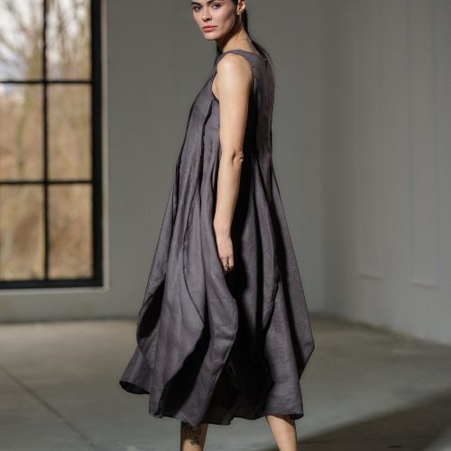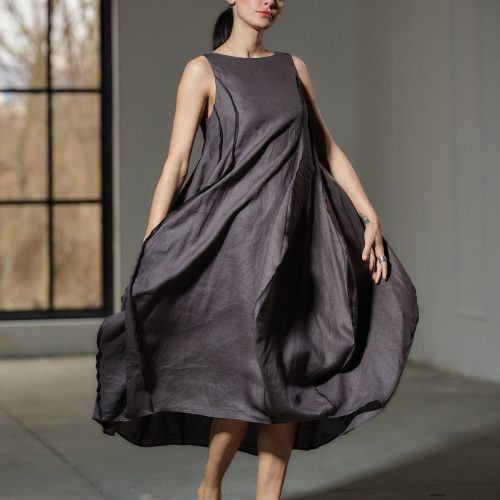 Dark Grey Asymmetrical Linen Dress Avant Garde Clothing