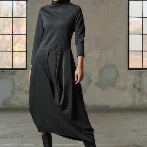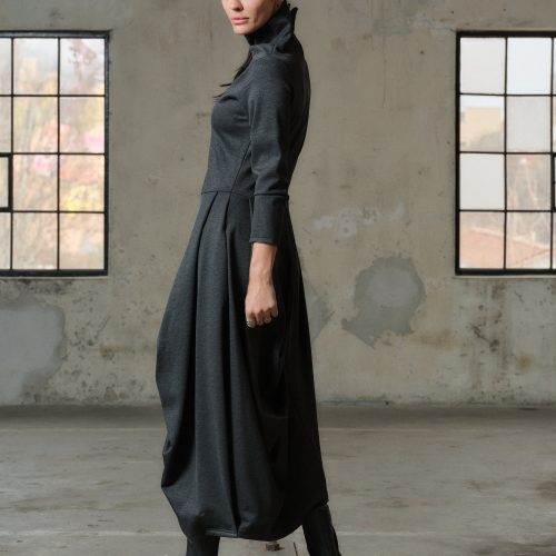 Dark Grey Asymmetrical Balloon Dress Avant Garde Midi