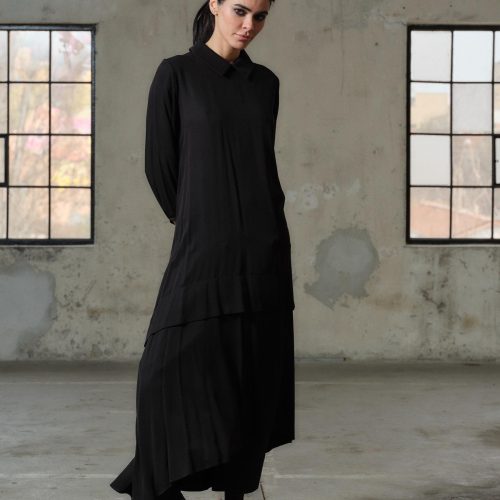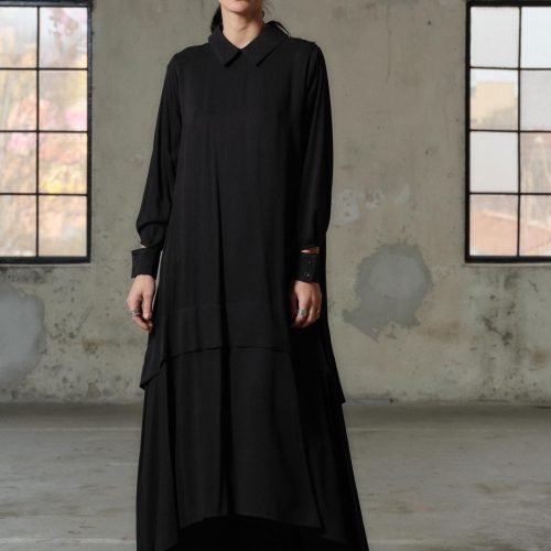 Black Viscose Maxi Dress Avant Garde Asymmetrical Shirt