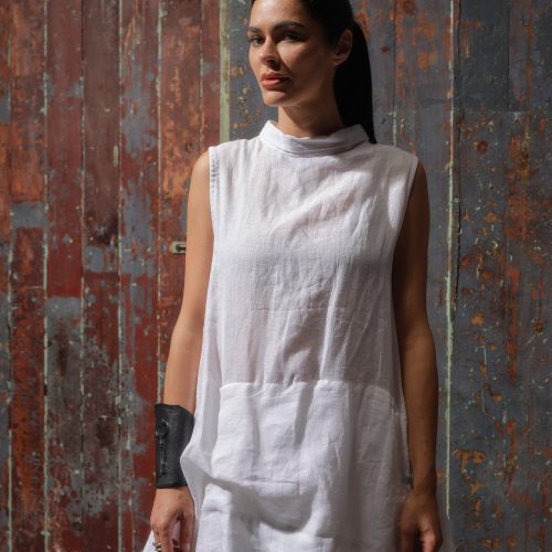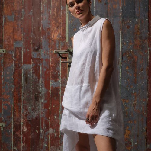 White Linen Dress: Asymmetrical Avant Garde Kaftan Tunic