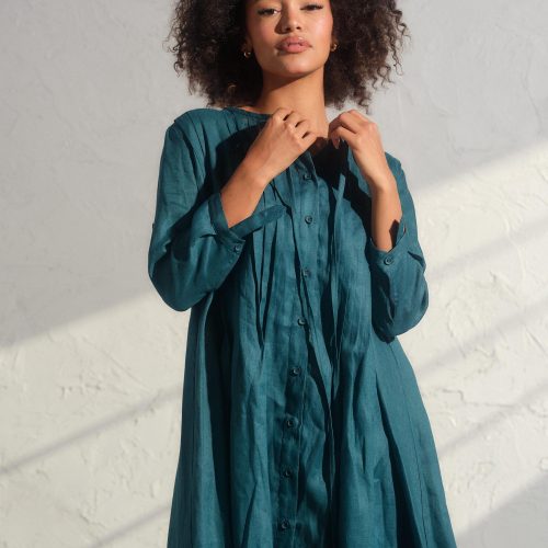 Petrol Blue Asymmetrical Linen Dress Avant Garde Clothing