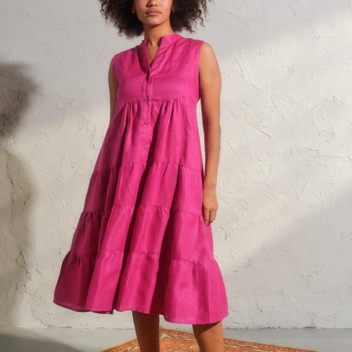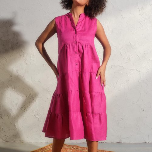 Summer Linen Midi Dress In Cyclamen Long Boho