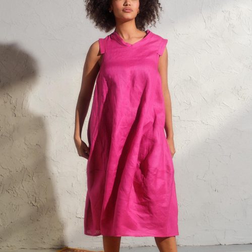 Summer Linen Midi Dress In Cyclamen Asymmetrical Bubble