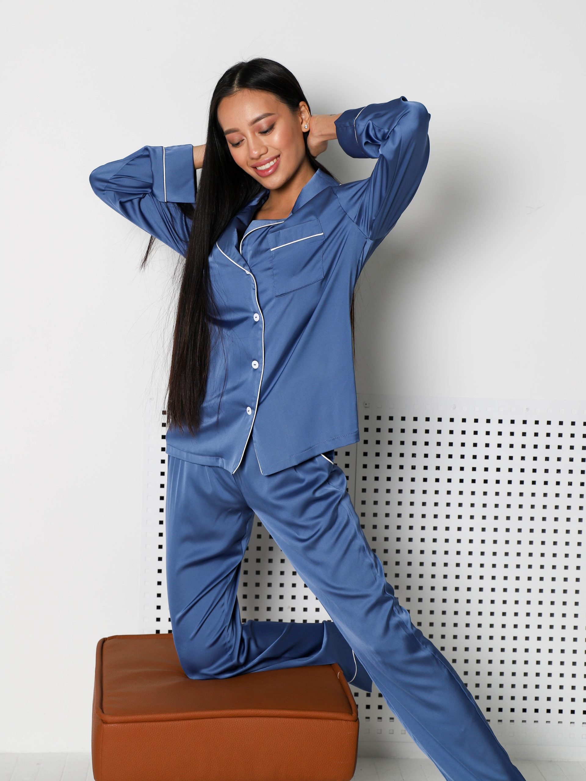 All PJ sets are made of comfortable Armani silk. It´s a breathable and allergy-friendly material. Great in terms of thermoregulation.