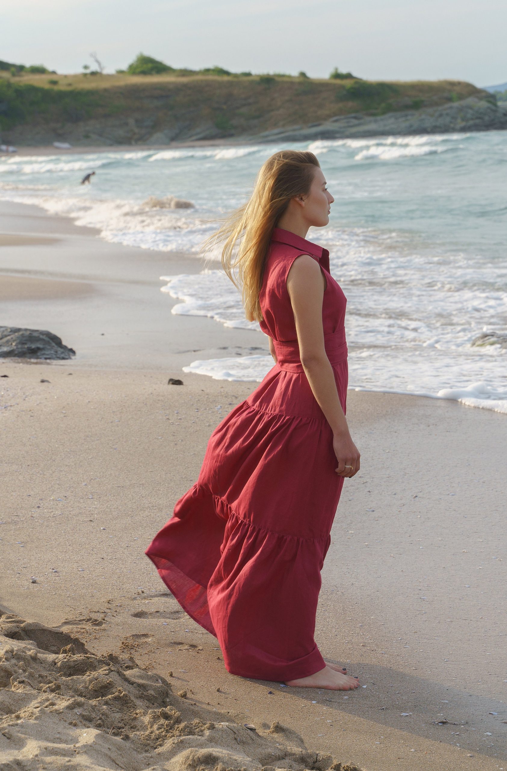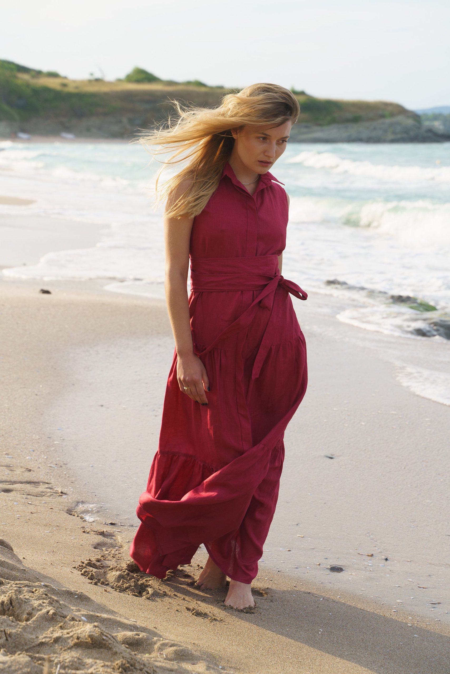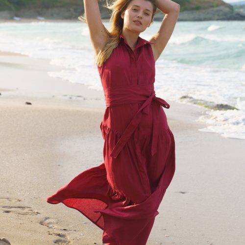 The most versatile long linen dress is finally here! Crafted in beautiful burgundy color, this summer dress is designed to boost you mood and make you the queen of the party.