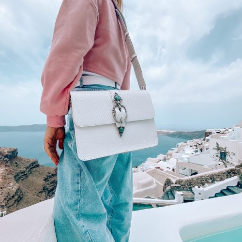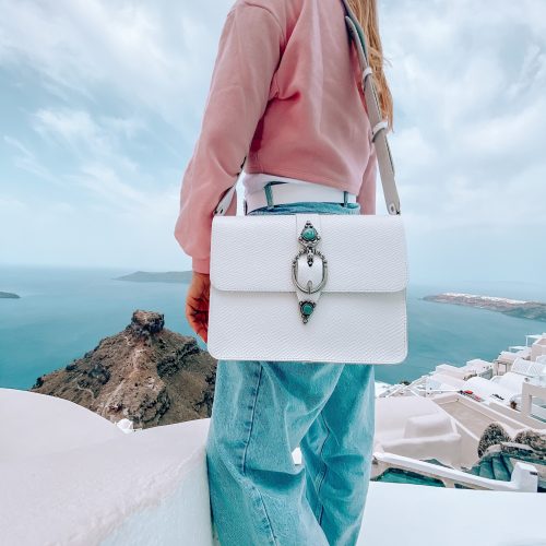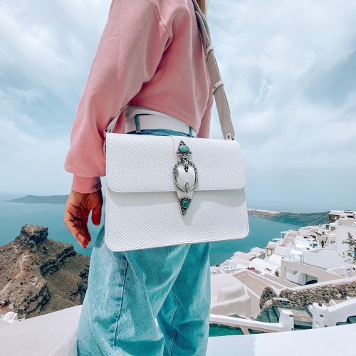 Introducing our stunning handmade Leather Purse, perfect for summer, crafted from the highest quality soft white leather with unique decoration and adorned with beautiful turquoise onyx beads on the central buckle. This gorgeous purse can be worn crossbody, on the shoulder, or carried as a handbag and is the ideal choice for all women. Shop our one-of-a-kind accessory only at us Store on Etsy.