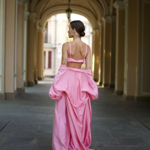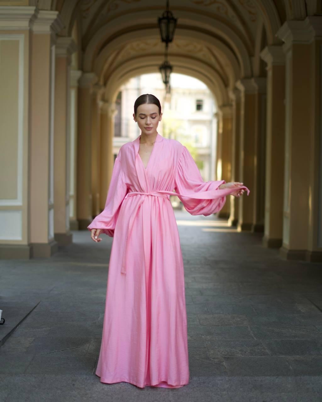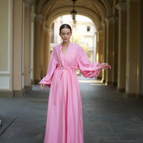 Three Piece Pajama Set Polished Linen (Bra+Robe+Pants) Pink