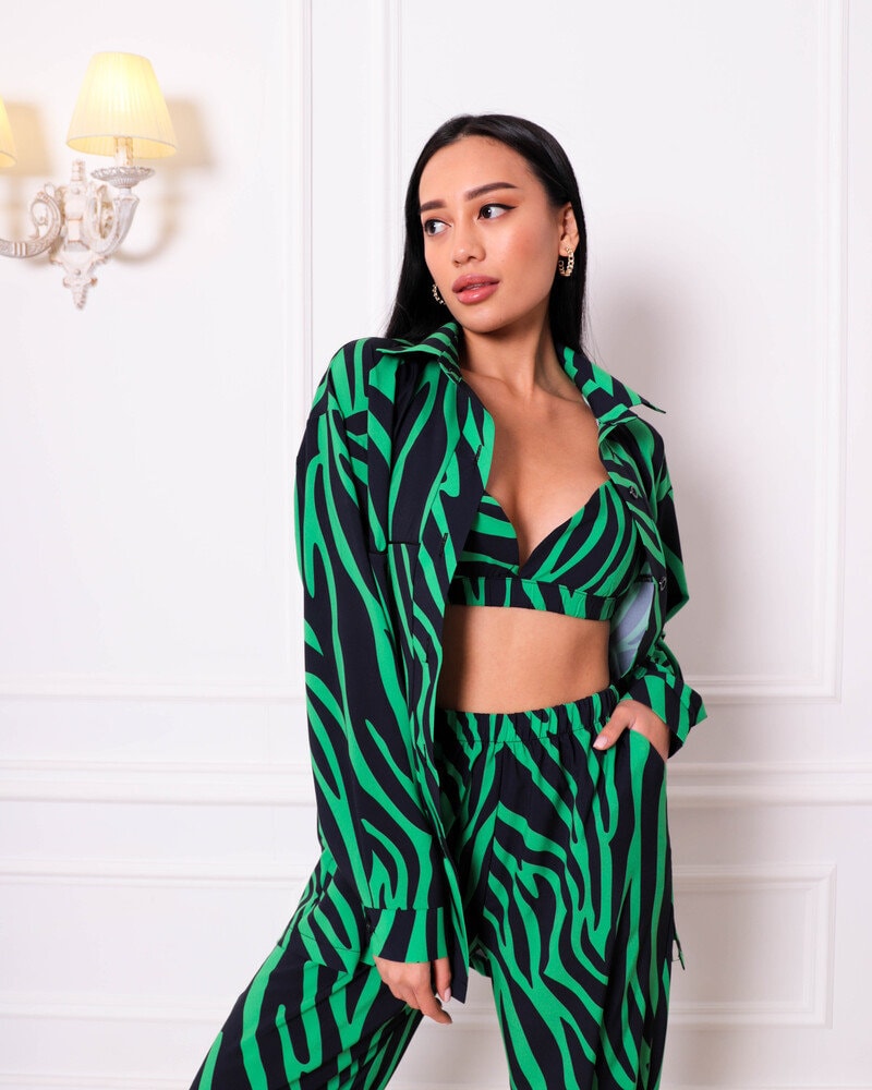 Zebra Print Pajama Set: Women’S 3 Piece Loungewear (2)